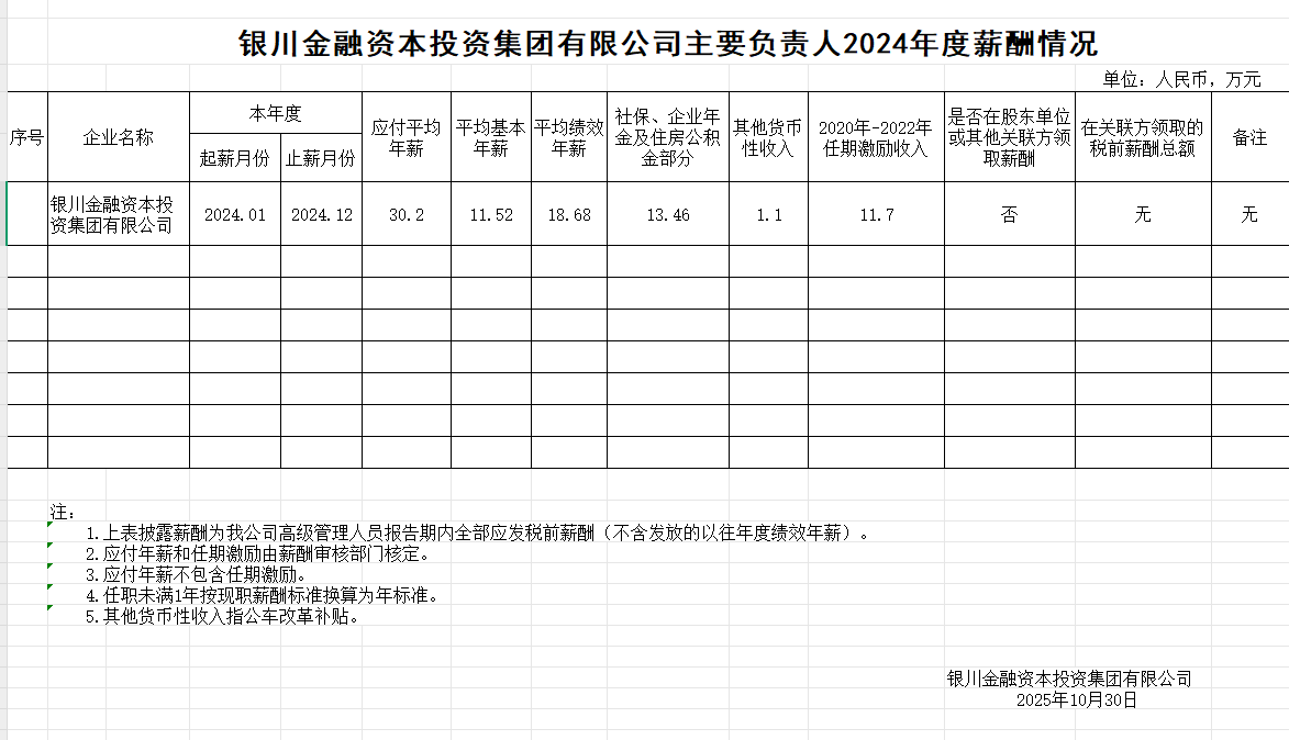 銀川金融資本投資集團有限公司企業(yè)負責(zé)人2024年度薪酬情況